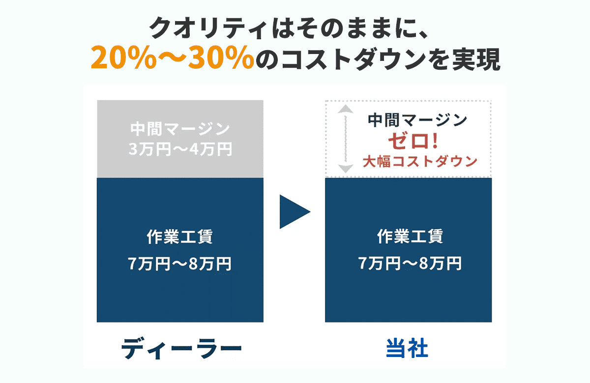 ガラス交換・リペアは、高品質ながらもコストを抑えたご提案が可能です。他店と比べてもリーズナブルな価格での施工を実現し、多くのお客様にご満足いただいております。まずはお気軽にご相談ください。